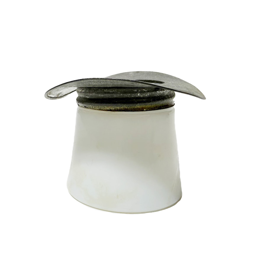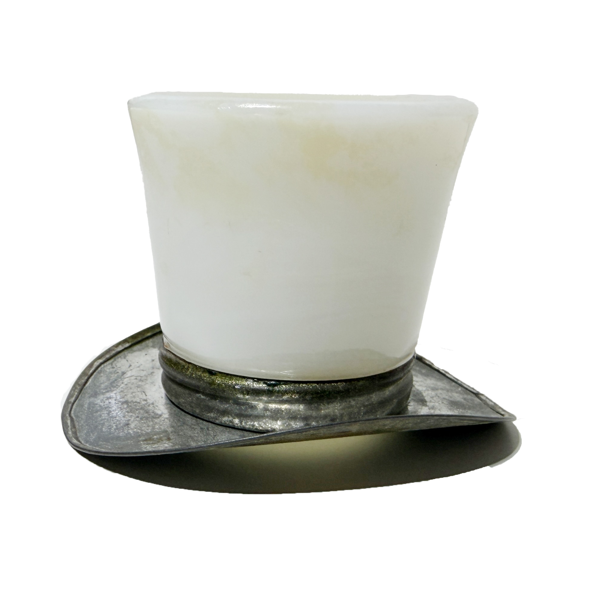 - Color: This is an EAPG Toothpick Holder Metal Brim Hat, white milk glass.
